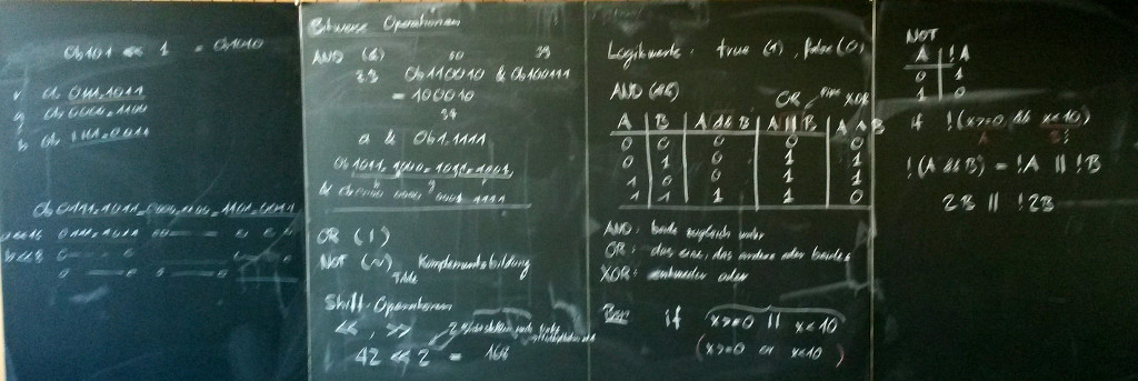Bits können nach links oder rechts verschoben werden. Das entspricht einer Multiplikation mit einer 2er Potenz (bzw. Division). Beim rechts verschieben “fallen” Bits rechts “heraus”.