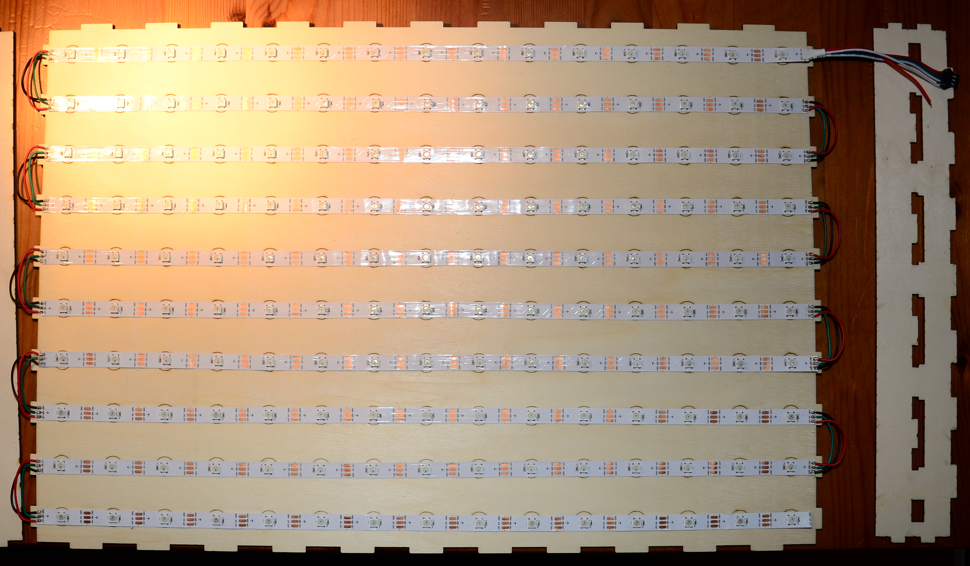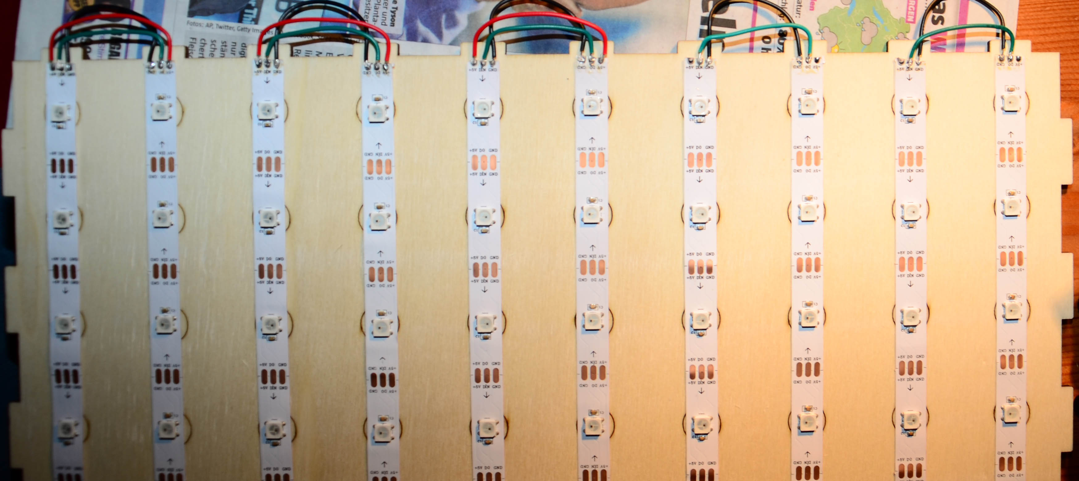 Zum Schluss sind alle $150=10\times15$ LEDs auf dem Brett verbaut und es sollte wie folgt aussschauen:
