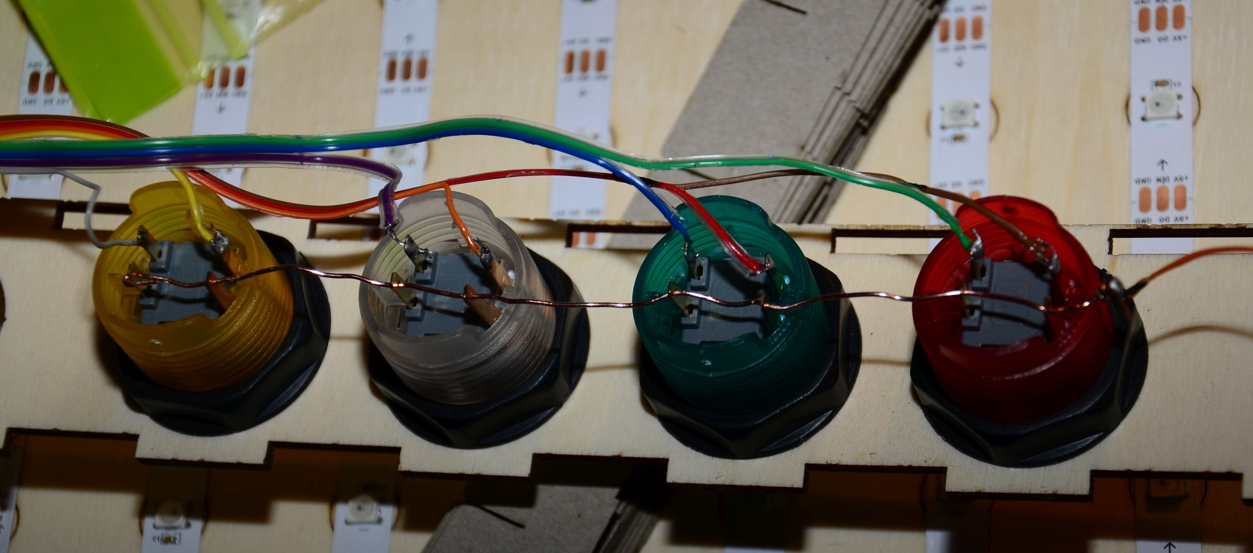 - GND vom Joystick auf einen GND (kann auch auch auf buttons oder LED-Streifen gehen.