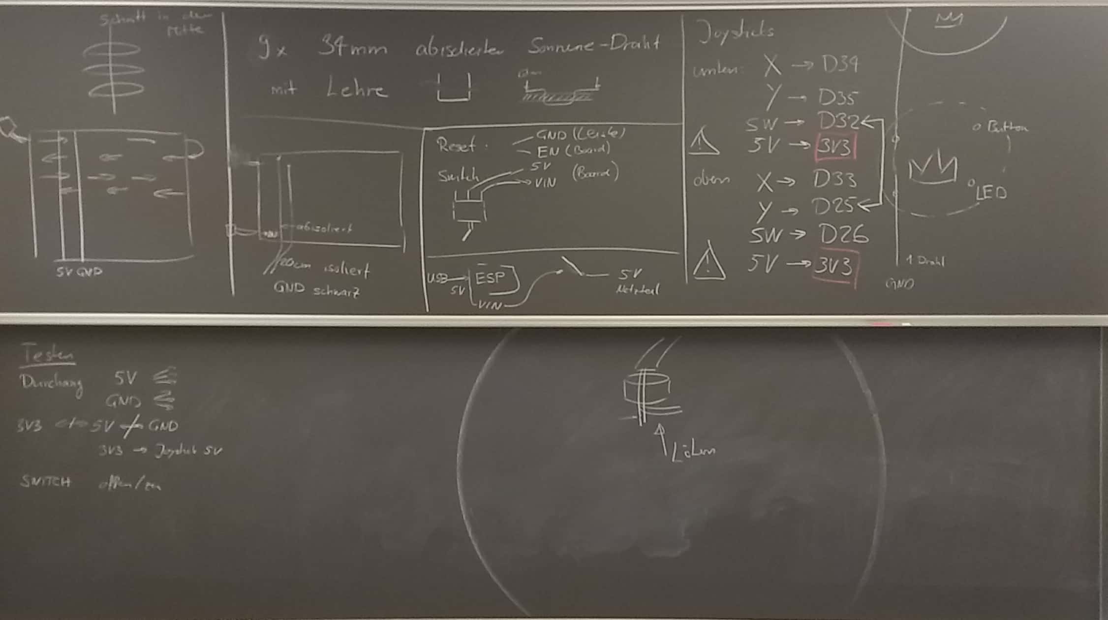- Joystick “unten”: X auf D34, Y auf D35, Button auf