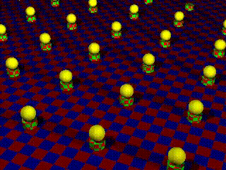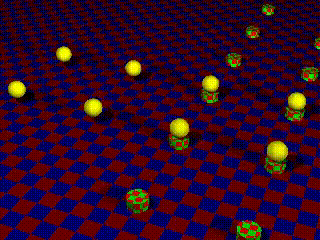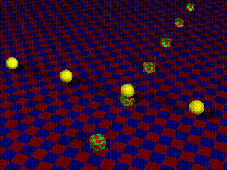 • Anstatt die Kugeln nur im Raum zu verschieben, könnte man diese auch in der Zeit verschieben (um $t=\frac{1}{2}$ oder $t=\frac{1}{3}$ damit nicht alle gleichzeitig hüpfen).