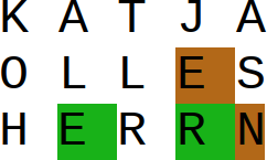 • Suchen Sie alle Wörter, in denen ein Buchstabe drei mal vorkommt.