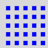 from graphics import * win = GraphWin("Hello", 600, 600) for i in range(100,600,100): r = Rectangle(Point(i,200), Point(i+50,250)) r.setFill("red") r.draw(win) win.getMouse() # Pause to view result win.close() # Close window when done
