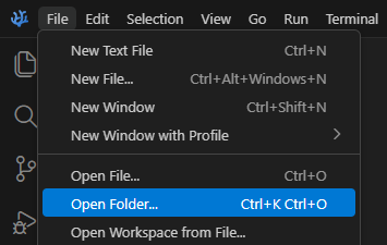 In VS Codium, im Menu «File» den Punkt «Open Folder…» auswählen. Vertrauen Sie sich selbst (den Autoren).