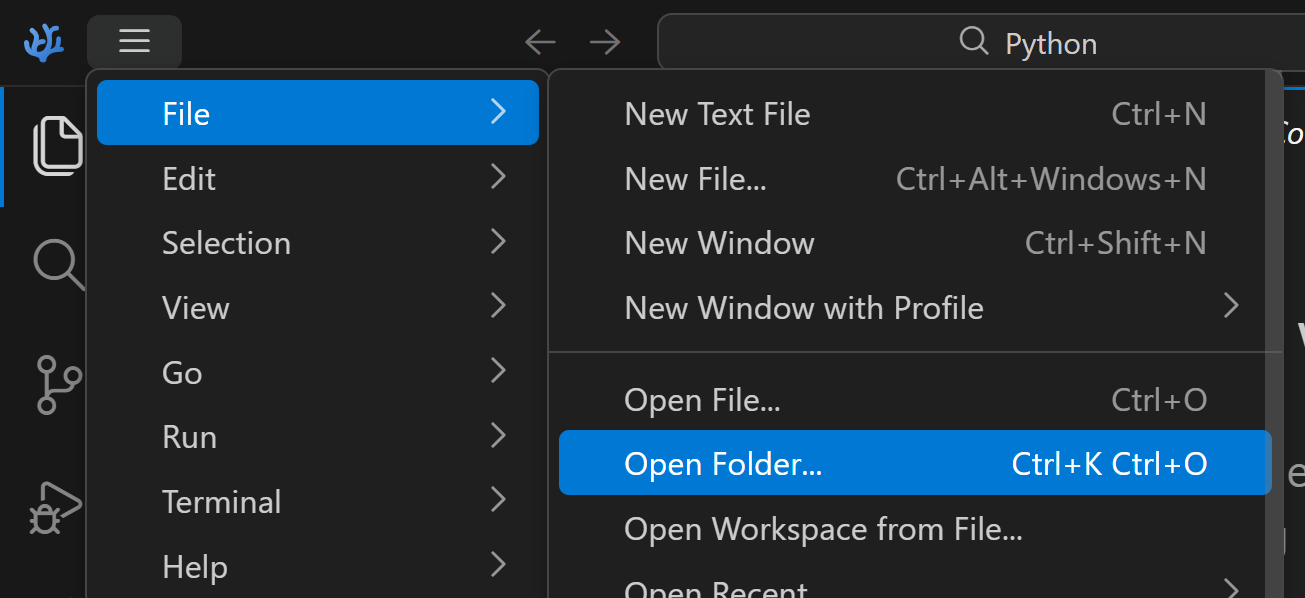 Damit alle nützlichen Features von VS Codium auch funktionieren, muss immer ein Order geöffnet werden, und nicht nur einzelne Dateien.