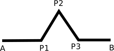 Wir werden eine Funktion (#macro) koch definieren. Als Eingabe benötigt die Funktion 3 Dinge: Startpunkt $A$ und Endpunkt $B$ der Strecke und die Angabe, wieviel mal die Strecke noch unterteilt werden soll (d.h. die Anzahl Rekursionen (Selbstaufrufe)).
