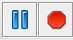 Sie erscheinen nur, wenn das Programm läuft (im normalen oder Debugging-Modus). Der linke Button hält das Programm an, der rechte bricht es ab.