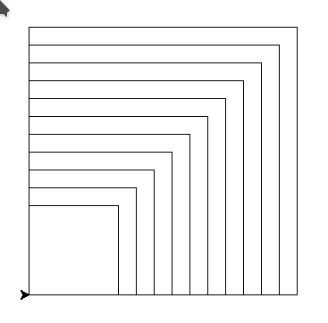 Verwende deine Funktion, um das folgende Bild zu erstellen! (Das kleinste Quadrat hat Seitenlänge 100, diese wächst von Quadrat zu Quadrat um 20, es gibt insgesamt n = 10 Quadrate.)