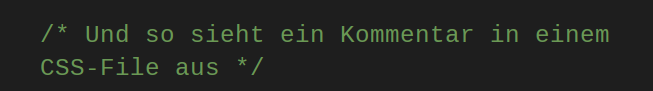 Kommentare in CSS-Dateien werden mit /* eingeleitet und enden mit */: