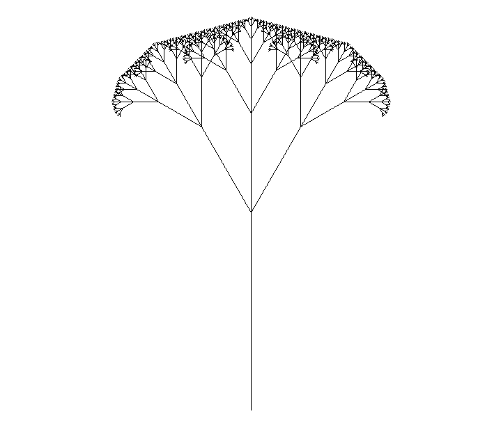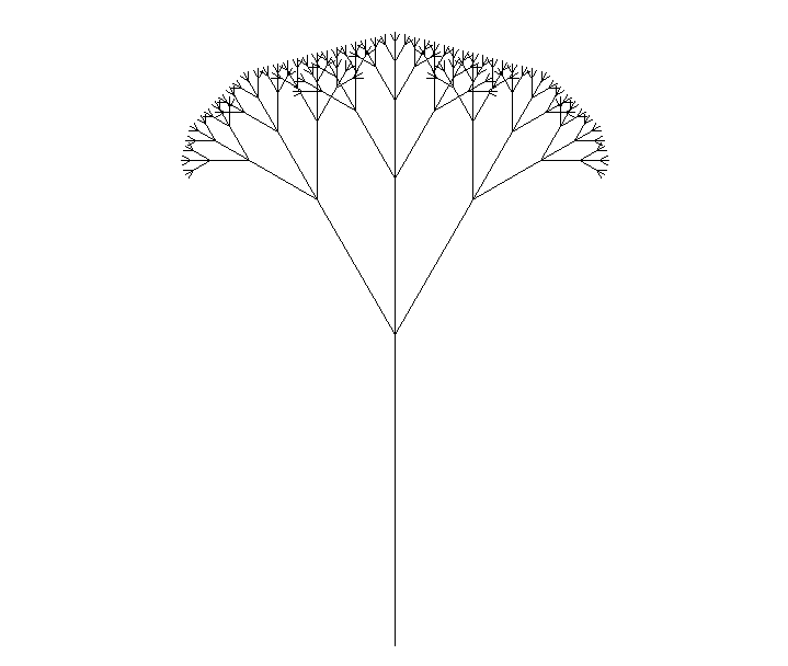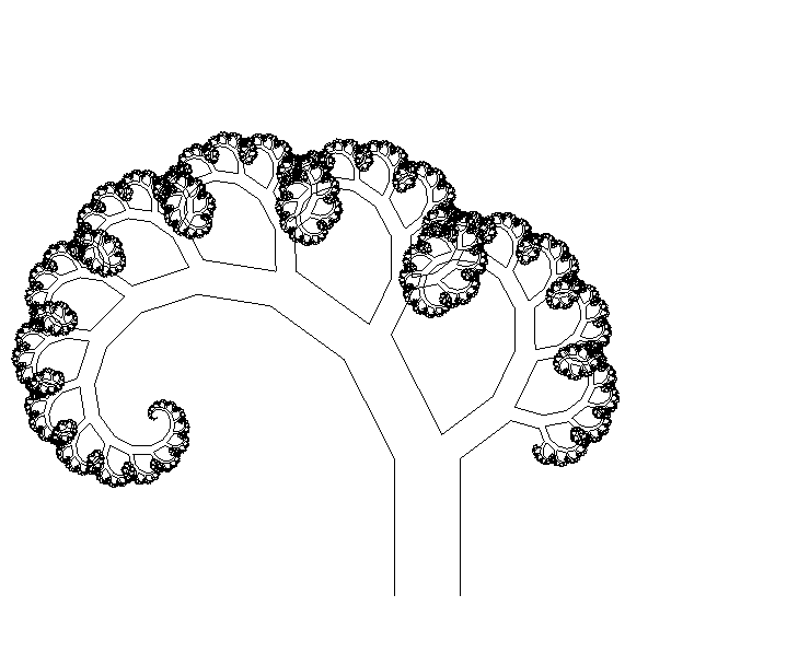- Variiere die Winkel bei den rekursiven Aufrufen; nett ist es beispielsweise, den Winkel bei jedem rekursiven Aufruf zu verdoppeln (und die Längen wie üblich zu halbieren).
