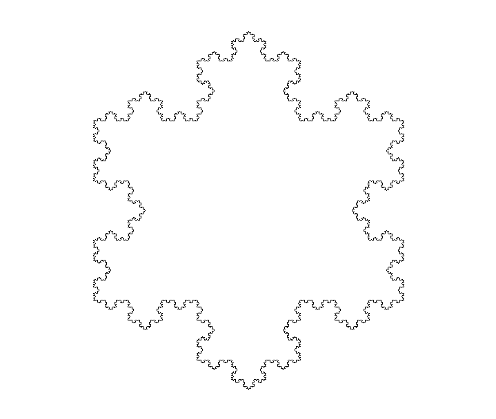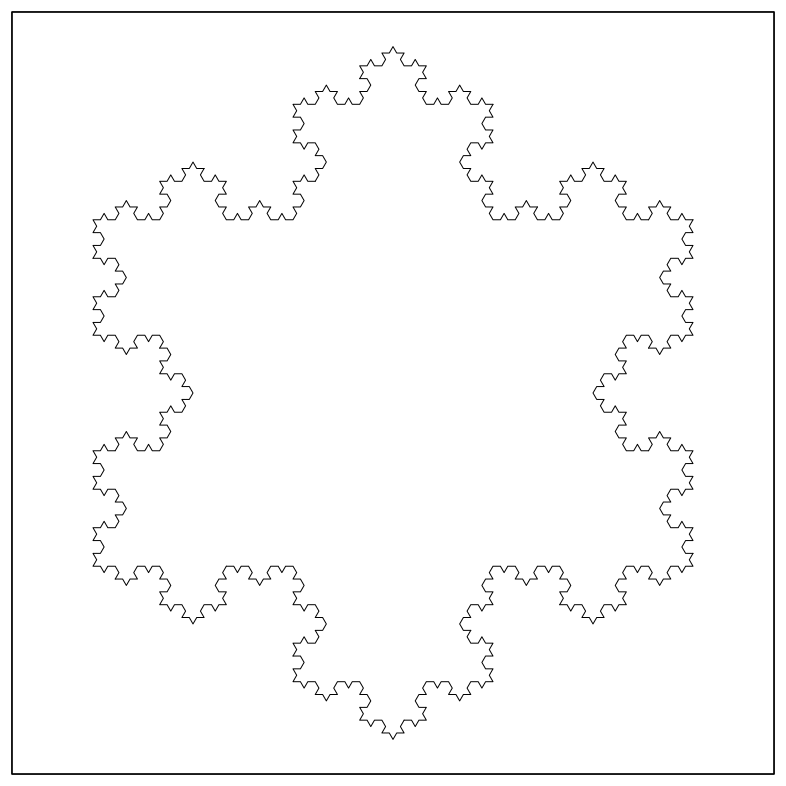 Mit dieser Vorarbeit ist es nun einfach, eine Funktion schneeflocke zu definieren, die die sogenannte Kochsche Schneeflocke zeichnet (ersetze die drei Seiten eines gleichseitigen Dreiecks durch Koch-Kurven):
