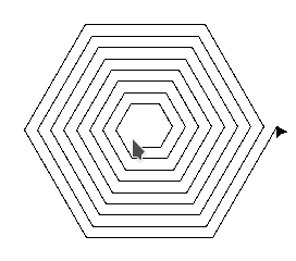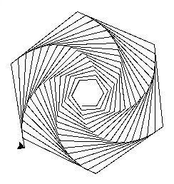 • Ändere dein Programm so, dass die folgenden Bilder gezeichnet werden (“Sechseck-Spirale” und “leicht verdrehte” Version davon).