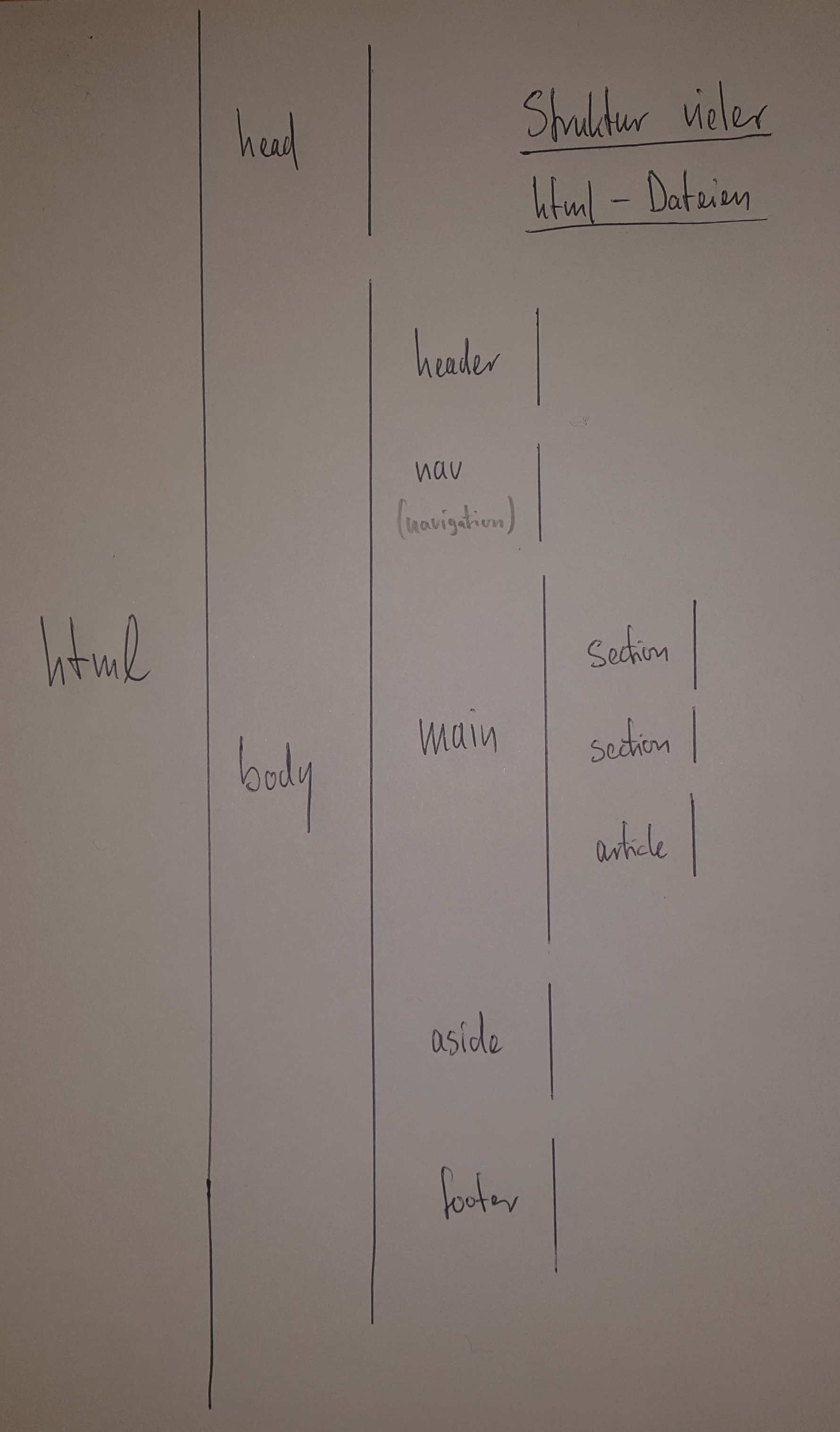 Grobe Struktur vieler HTML-Seiten (etwa KSBG, SBB, etc.): struktur-html-datei.jpg. Zur Verwendung “semantischer” HTML-Elemente siehe etwa:
