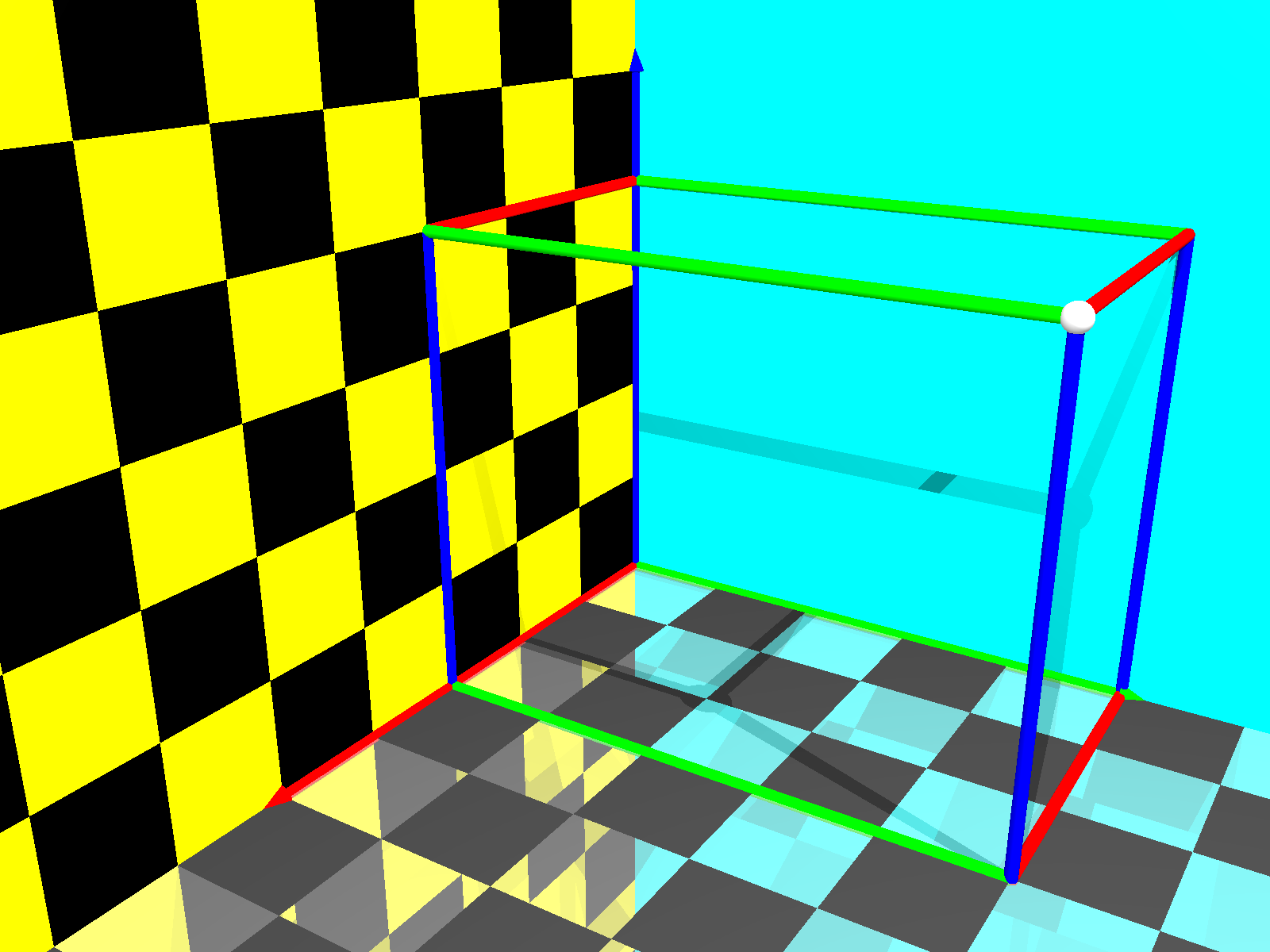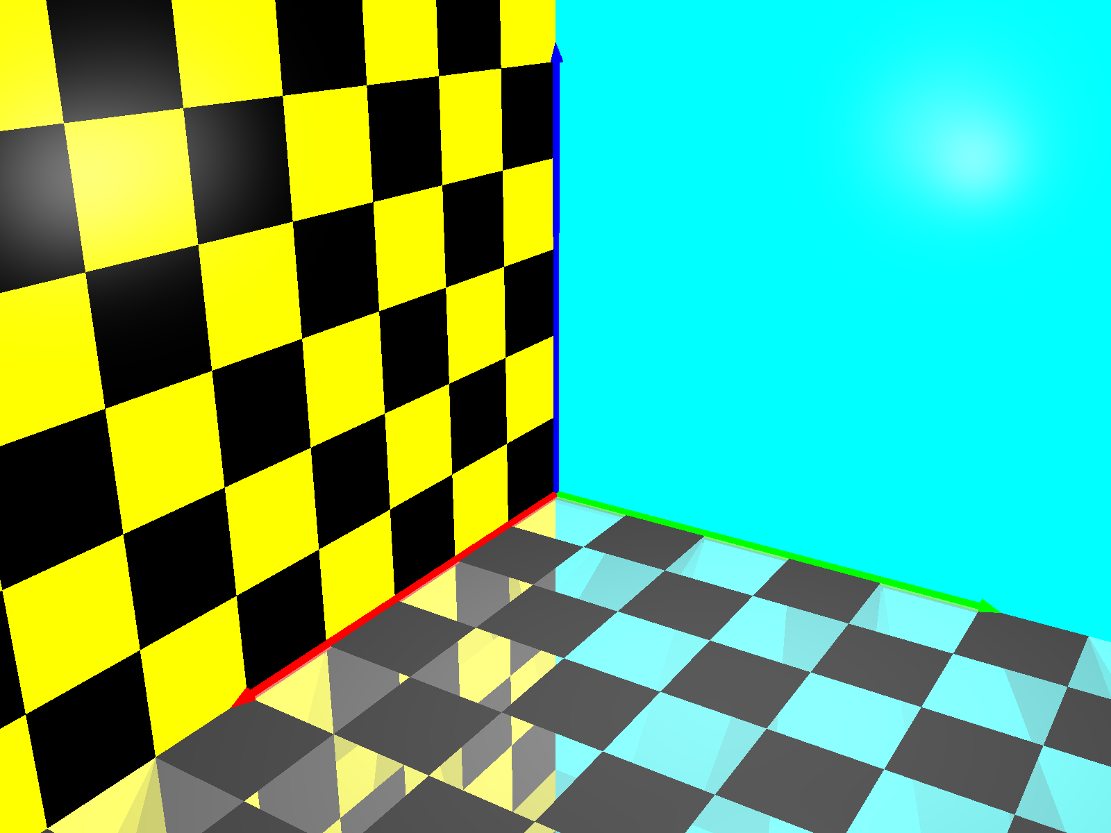 • ergänze die x-z-Ebene in gelb-schwarzem Schachbrettmuster (gelb hat den RGB-Wert (1,1,0));